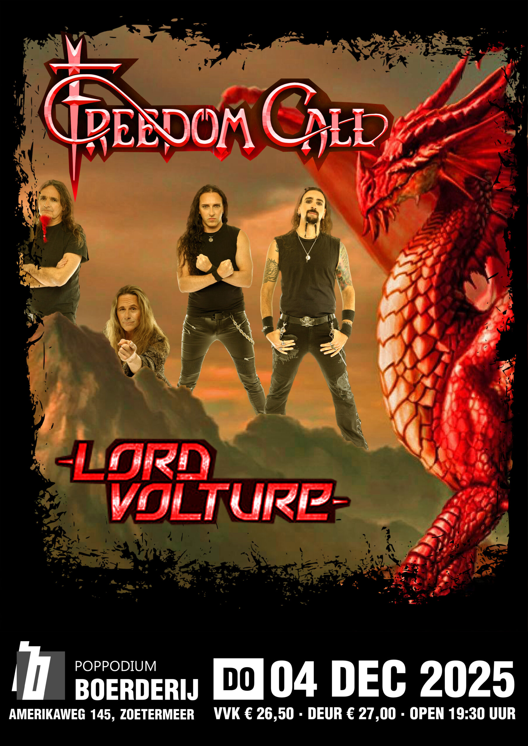 Bij een grandiose headliner hoort ook een grandiose supportact. Daarvoor hoeven we niet ver te zoeken. Want met het Nederlandse Lord Volture hebben we een band van formaat en internationale allure. Onvervalste heavy metal in het straatje van Maiden en Priest. De perfecte opmaat voor het feestje van Freedom Call.