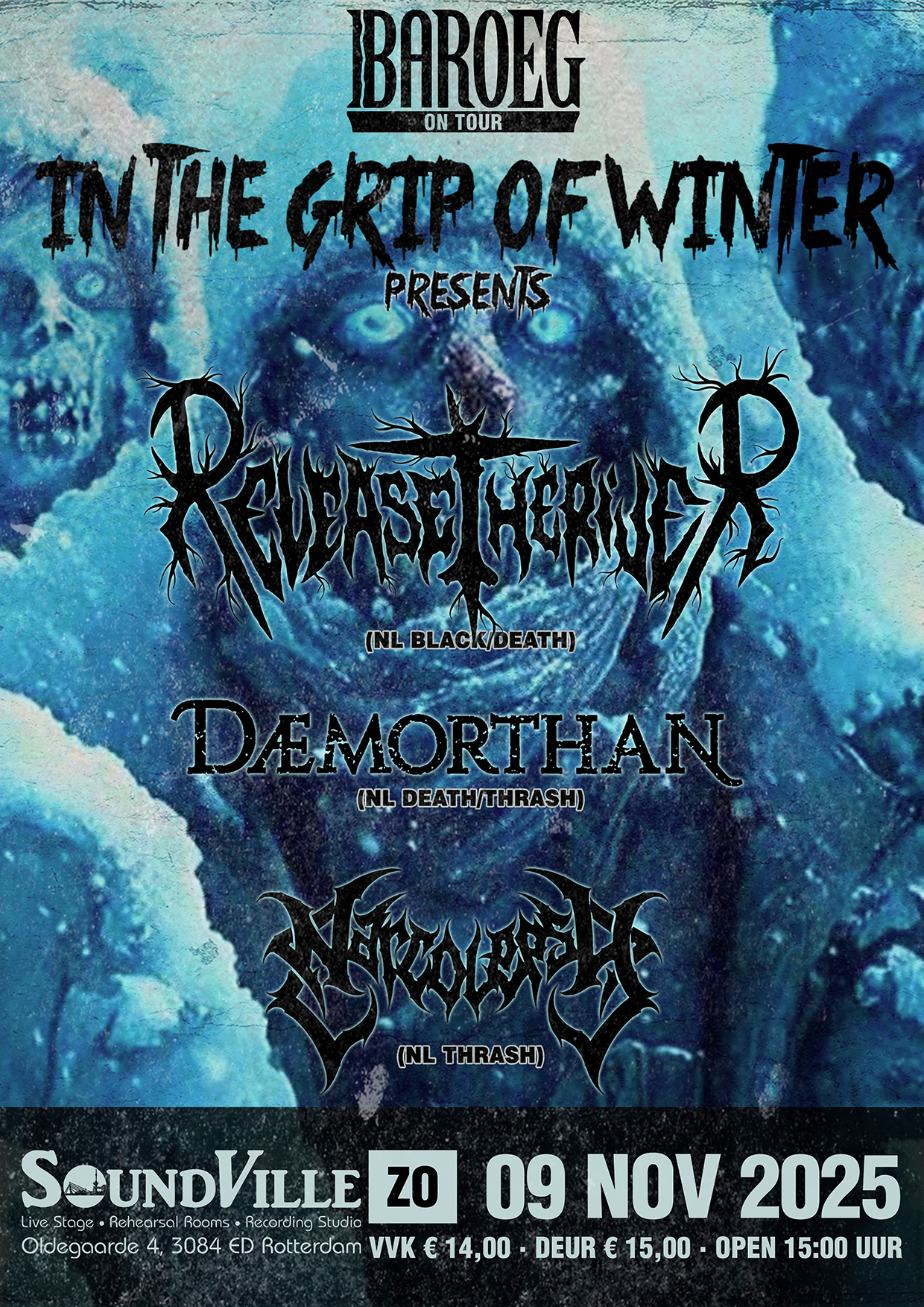 Tijdens de nieuwbouw van Baroeg zijn we op tour. Na twee succesvolle edities van In The Grip Of Winter in het retegezellige SoundVille is het weer tijd voor een nieuwe editie waarin we geweldige Nederlandse bands een podium bieden.