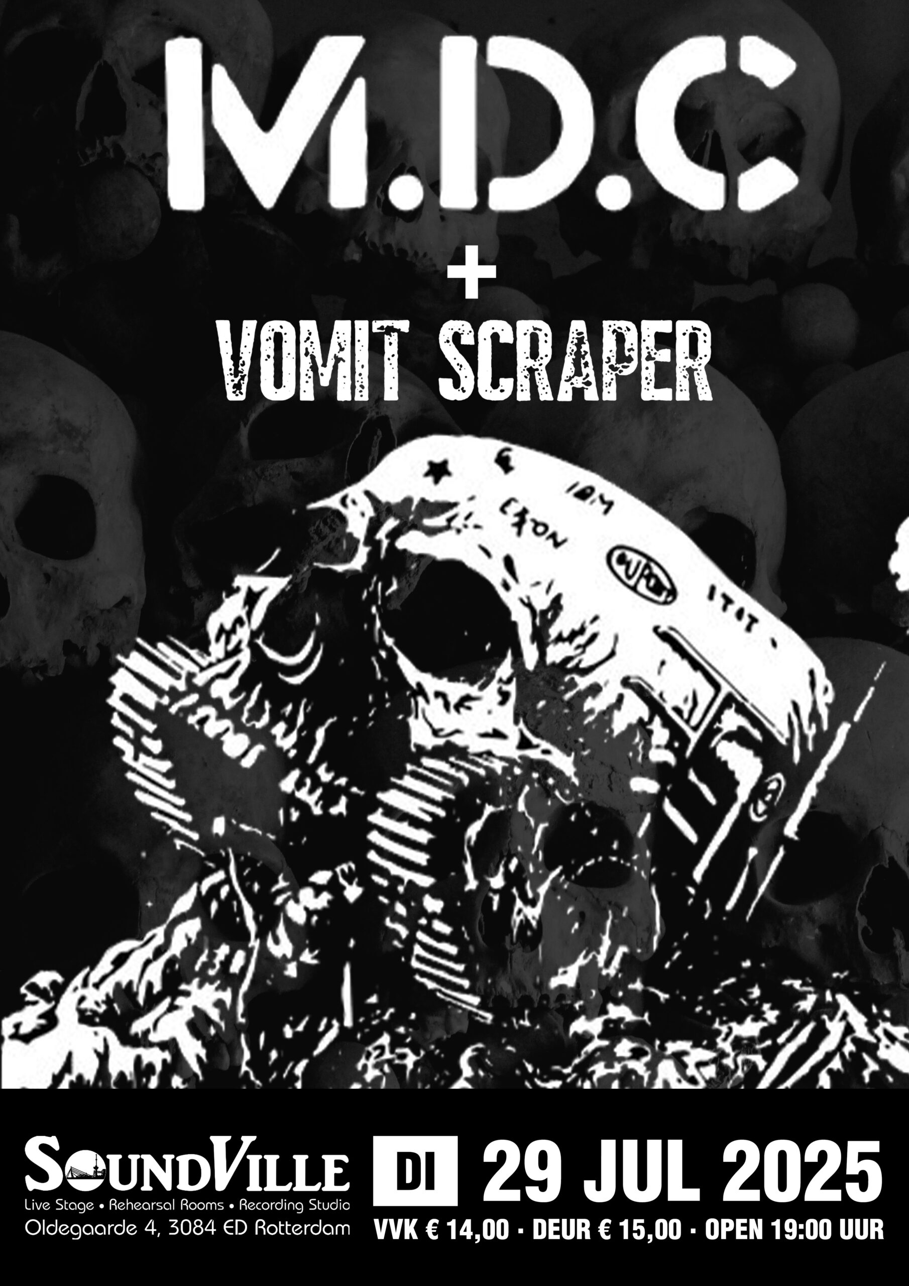 Helse grommen, angstaanjagende huilbuien, krijsende strijkers en beukende beats. Vomit Scraper ontwaakte in het riool van Rotterdam in het najaar van 2020. In 2021 namen ze hun debuutalbum ‘Slaughter Of Millions’ op met 14 tracks. Onderwerpen van de teksten gaan over de waanzin van oorlog, maatschappijkritiek tot zorgen over de afbraak van natuur en milieu. De band is sterk beïnvloed door “Scando-Core bands” zoals Anti-Cimex, Shitlickers en Totalitär. Voeg daar nog wat UK82 a la GBH en uiteraard Discharge aan toe en je hebt een serieuze Rotterdamse D-Beat Massacre! Verwacht niets anders dan rauw oorverdovend lawaai.