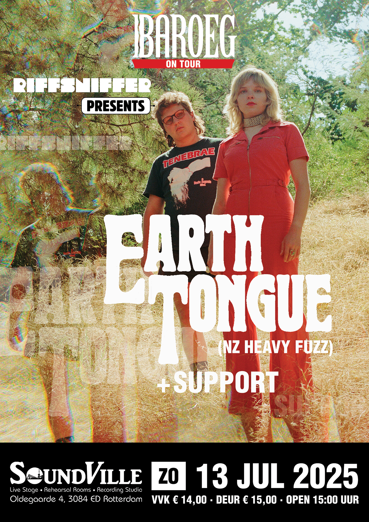 Earth Tongue is een heavy psychrockduo uit Wellington, Nieuw-Zeeland. Gitarist Gussie Larkin is een meester in het creëren van met fuzz doordrenkte riffs en samen met Ezra Simons’ eigenzinnige drumwerk wordt sinds 2016 een divers publiek in transcendentale staten gebracht. Het debuutalbum ‘Floating Being’ werd snel een underground hit en ontving lovende kritieken van liefhebbers over de hele wereld. Niemand minder dan Ty Segall (Osees, Fuzz) regelde vervolgens een deal bij het vuige garazierocklabel In The Red Records. Earth Tongue’s liveshows zijn een krachtige, cult-achtige ervaring waarin de perfecte mix van heavy en catchy songs je om de oren vliegen.