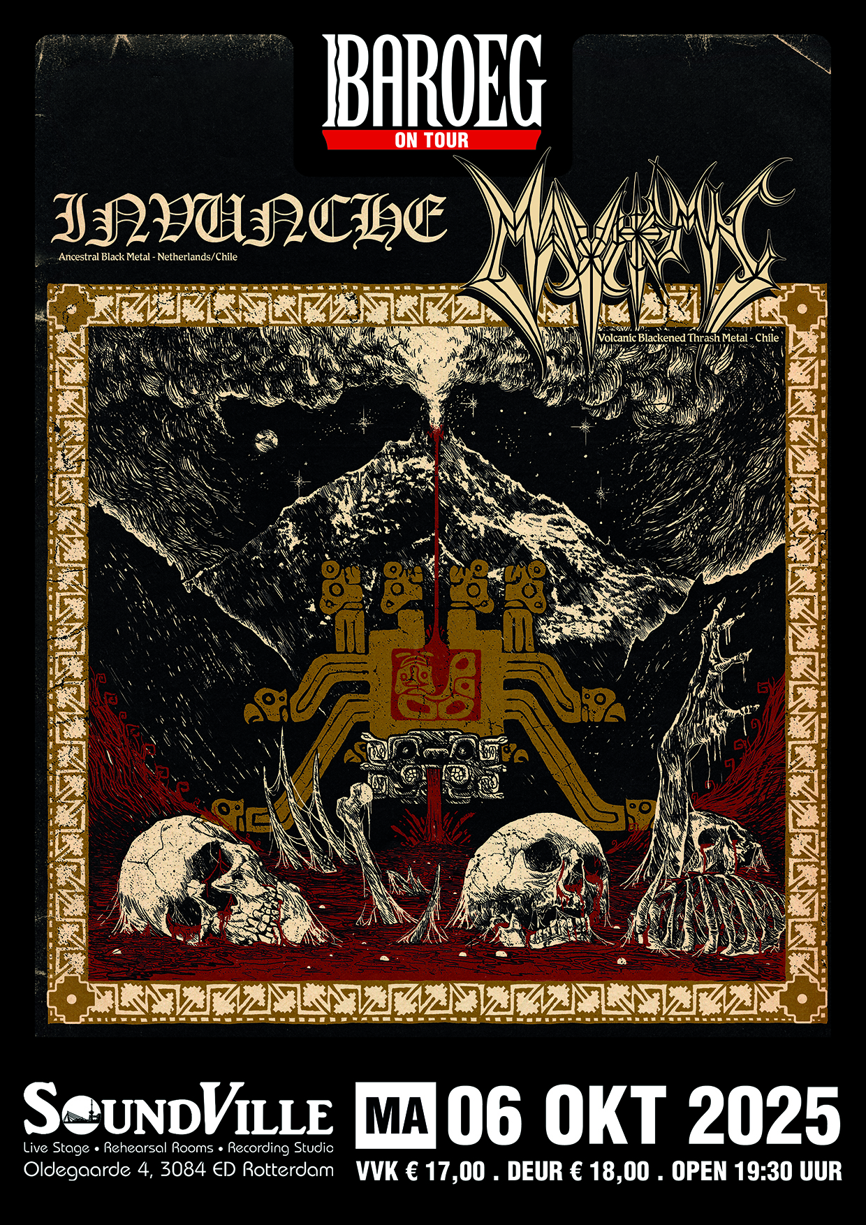 Het Duitse Sepulchral Voice Records is een label waar extreme metal voor fijnproevers uitgebracht wordt. Denk aan acts als Degial, Concrete Winds of Funereal Presence. Ook het Chileense Mayhemic wordt door het label uitgebracht met “Toba” als recentste album. Daarop hoor je zwartgeblakerde thrash metal met die typische Zuid-Amerikaanse agressieve aanpak. Als vergelijking met wat bekendere namen kunnen we bijvoorbeeld Kreator of Dark Angel noemen.