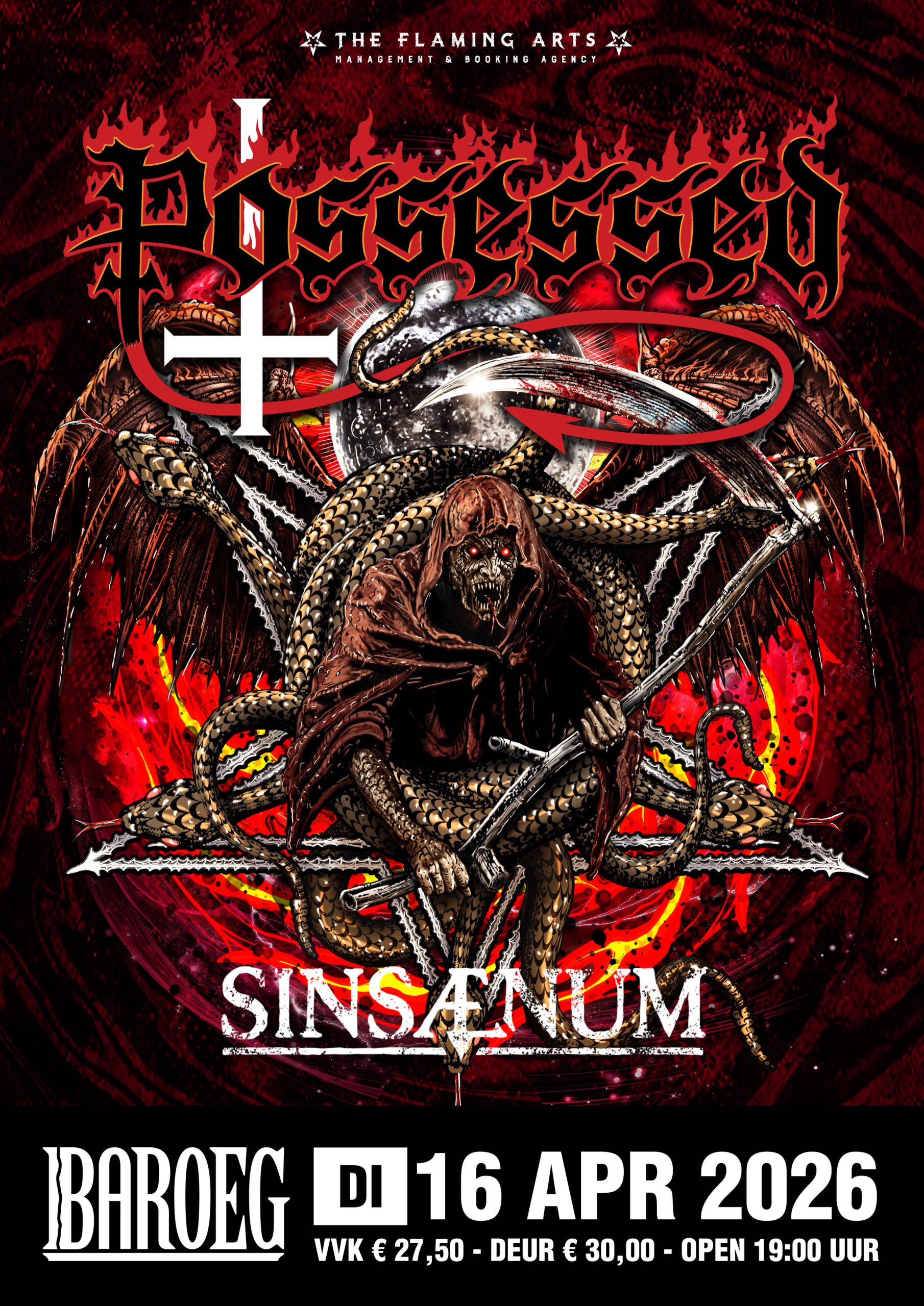 De leden van Sinsaenum hebben hun sporen verdiend in bands als Dååth, Loadblast en Mayhem. De multinationale bezetting uit Frankrijk, Hongarije en de VS maakt blackened death metal vakkundig behapbaar voor een breder publiek. Daarmee zijn ze de ideale opener voor Possessed, aangezien beide bands ook vele thrashers tot hun fans mogen rekenen.