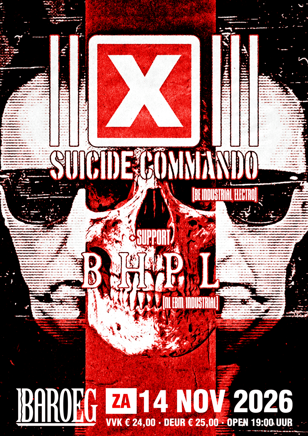 Suicide Commando heeft een indrukwekkend oeuvre opgebouwd, met klassiekers als Hellraiser, Dein herz, meine Gier en Love breeds suicide. Nummers die jarenlang de dansvloer van het oude Baroeg pand hebben geteisterd. En dat zetten we in ons nieuwe pand uiteraard door met een onvergetelijke tijdloze muzikale trip door het industriële landschap van deze Belgische grootmeesters.